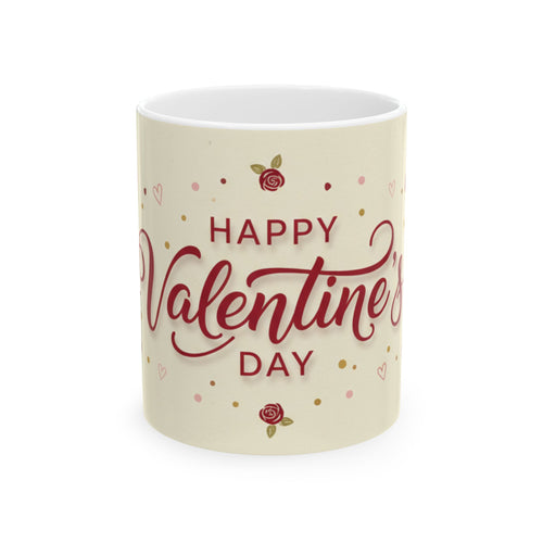 Valentine's Day Ceramic Mug — "Happy Valentine's Day" Romantic Rose Coffee Cup (11oz/15oz)